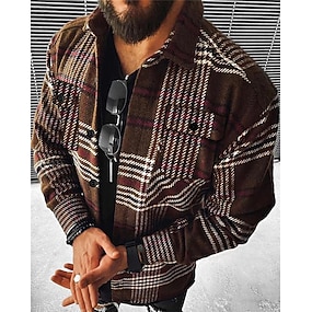Men's Plaid Geometric Pattern Shirt Jacket Overshirt Long Sleeve Fashion Going out Weekend Fall & Winter Turndown Print Pink Blue Sky Blue Vivid Pink Orange