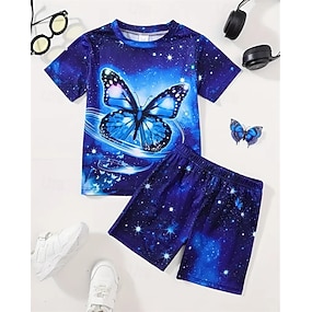 للفتيات 3D فراشة تيشيرت وشورت مجموعة كم قصير الصيف الربيع الرياضات موضة يوميا أطفال 4-12 سنة رقبة العمل الأماكن المفتوحة عطلة الرياضة قالب مثالي