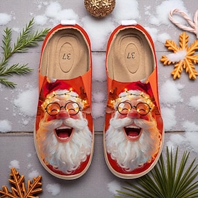 حذاء سفر نسائي من القماش بتصميم سانتا كلوز بمقدمة عريضة - حذاء مريح للمشي غير الرسمي في عيد الميلاد للرحلات والعطلات والارتداء اليومي