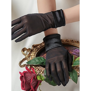 قفاز بطول المعصم من الدانتيل نمط أنيق كلاسيكي بلون خالص زفاف حفلة قفاز