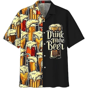 رجالي مطبوعات غرافيك بيرة قميص قميص هاواي قميص الوها كم قصير استوائي موضة ستايل هاواي فضفاض ستايل هاواي مناسب للعطلات الصيف الربيع طوي طباعة زر أسفل أصفر فاتح أسود أصفر ذهبي أخضر
