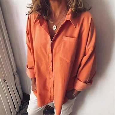 نسائي قميص قميص كتان كتان قطني صناعي Buttons سهل يوميا أنيق أساسي كم طويل قبعة القميص قمصان عادية مناسب للبس اليومي عمل مناسب للعطلات برتقالي أخضر كاكي الربيع الخريف