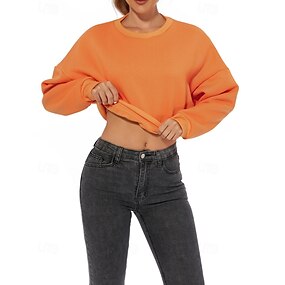 نسائي بيجامة سويت شيرت مبطنة بالصوف كنزة صوفية بلوزات سهل كاجوال كم طويل رقبة عالية مدورة قمصان عادية المنزل شارع مناسب للعطلات برتقالي الخريف الشتاء