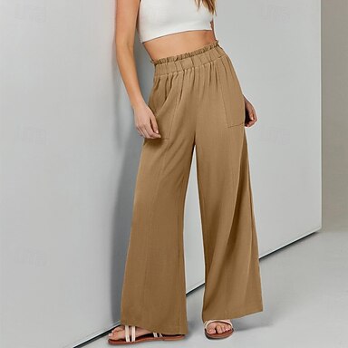 نسائي ساق عريضه السراويل الصيفية العطلة أساسي مكتمل الطول خصر متوسط سهل غير مطاطي فضفاض مناسب للبس اليومي عطلة بني غامق أبيض الرز أسود أخضر الصيف الربيع فضفاض صالح