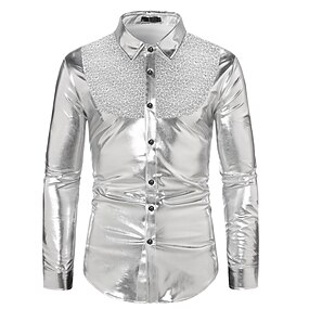 عتيق / معتق الثمانينات معدني لامع قميص ديسكو لون الصلبة طوي ملابس تنكرية رجالي زي الكرنفال يوم الملوك مهرجان أداء نادي فخر موكب للبالغين قميص كل الفصول