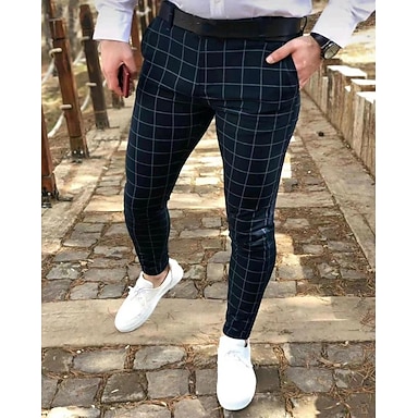 رجالي بدلة بنطلونات تشينوز Buttons جيب منقوش راحة رسمي مناسب للحفلات عمل موضة الطراز الكلاسيكي أسود أزرق البحرية مرن نسبياً