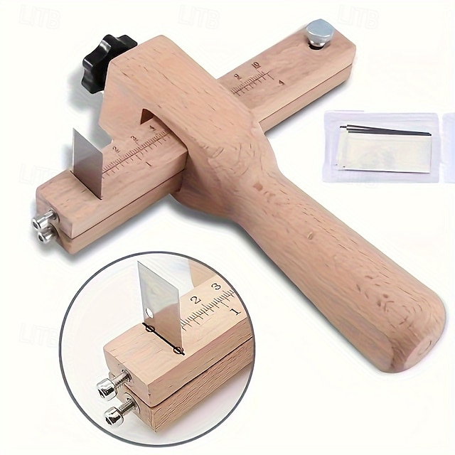 1 قطعة صانع حزام جلدي خشبي قابل للتعديل مع 5 شفرات بديلة لأدوات صناعة الجلود والبستنة DIY قاطع حزام الحرف اليدوية