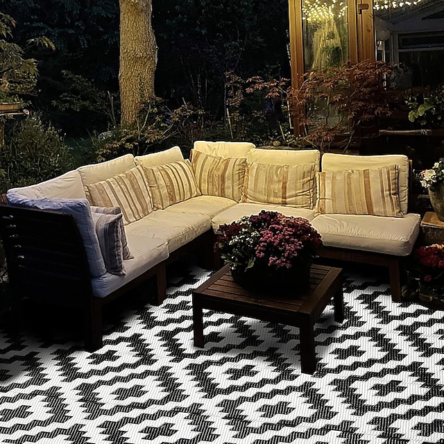 سجاد تخييم، حصيرة من القش البلاستيكية مقاومة للعوامل الجوية وقابلة للعكس، سجادة أرضية كبيرة للاستخدام في الهواء الطلق، الفناء الخلفي، السطح، النزهة، الشاطئ، المقطورة، التخييم