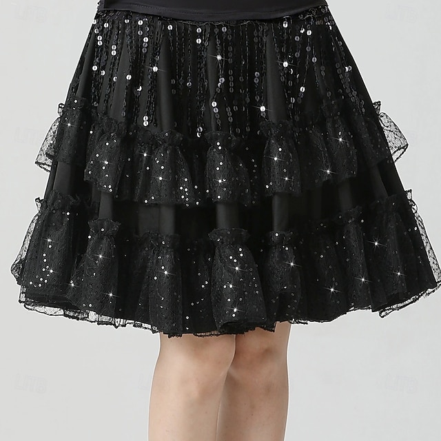 الرقص اللاتيني تنانير لون نقي ربط شىء صغير براق نسائي أداء التدريب ارتفاع عال بوليستر