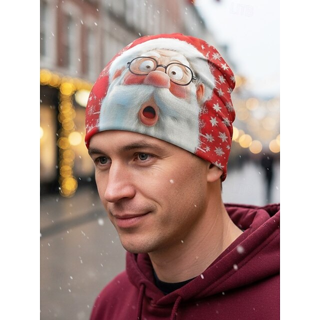 قبعة بنمط عيد الميلاد للرجال - يمكن استخدامها كغطاء للرقبة، حمراء احتفالية، بطبعة سانتا كلوز، ناعمة ومتعددة الاستخدامات، مناسبة لحفلات العطلات وارتداء الشتاء