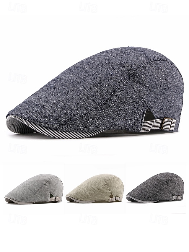 قبعة مسطحة من الكتان قابلة للتعديل للرجال، قبعة خفيفة الوزن قابلة للتهوية مع تفاصيل مخططة، قبعة على شكل لبلاب عتيق للنزهات غير الرسمية والارتداء اليومي