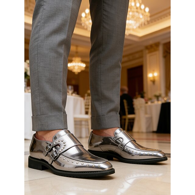 أحذية رجالية فضية أنيقة سهلة الارتداء - فاخرة مع مشبك مزخرف، مثالية للمناسبات الرسمية والحفلات والمناسبات الخاصة وحفلات الزفاف.