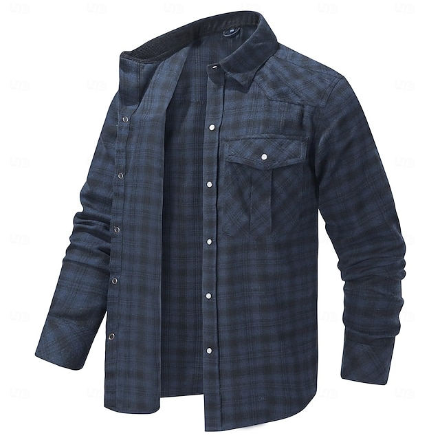 رجالي قميص قميص خفيف منقوش الأماكن المفتوحة شارع أحمر أزرق بحري داكن أخضر كاكي كم طويل قبة الشتاء ربيع & الصيف ملابس