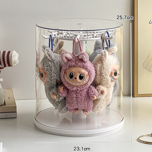 علبة عرض دوارة - علبة عرض واضحة 360 درجة للشخصيات والميداليات مع غطاء مضاد للغبار لدمى محشوة بطول 17/15 سم، حامل عرض قابل للتكديس لهدايا المجموعة (بدون دمى) هدية عيد الميلاد