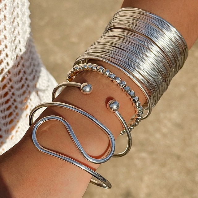 Samba Accessories أساور فضية مختلطة للنساء - أساور سلكية متعددة الطبقات لاحتفالات البرازيل