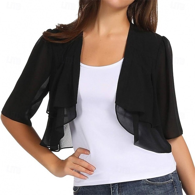 غطاء شمس أنيق للنساء بأكمام قصيرة من الشيفون لزفاف صيفي مع لون خالص لحفلات الزفاف