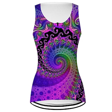 نسائي سترة الدراجة جورسيه الدراجة الرسم الأزهار النباتية بدون كم الدراجة سترة جورسيه قمم مع 3 جيوب خلفية دراجة جبلية دراجة الطريق سريع جاف الجيب الخلفي رطوبة فتل متنفس رياضات بنفسجي أصفر أحمر ملابس