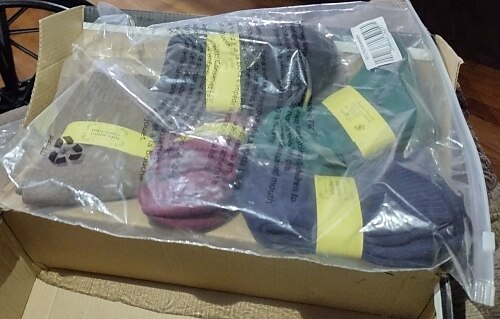 Received it on Christmas Eve. Socks colours same as on the picture showed on the App. Received it on Christmas Eve. Socks colours same as on the picture showed on the App.