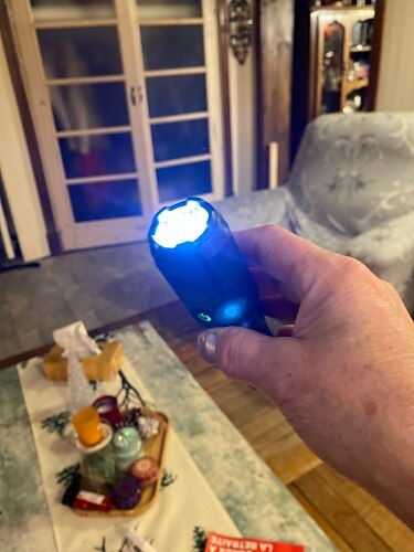 Behoorlijk krachtige lichtstraal. Er zitten 3 standen op: zeer krachtig, gewoon en stroboscoop die zie ik mezelf nog niet meteen gebruiken, maar wel leuk als extraatje. Behoorlijk krachtige lichtstraal. Er zitten 3 standen op: zeer krachtig, gewoon en stroboscoop die zie ik mezelf nog niet meteen gebruiken, maar wel leuk als extraatje.