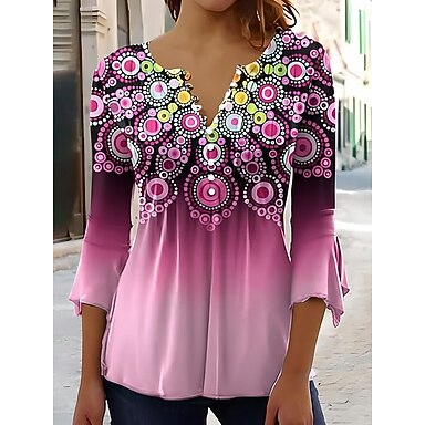 بلوزة نسائية بأكمام طويلة وزر علوية مطبوعة برسومات زهور ملونة بتدرجات يومية كاجوال بأكمام قصيرة بياقة عادية متنوعة يومية صفراء زرقاء خضراء صيفية