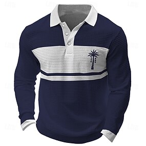 رجالي شجرة النخيل قمصان البولو كم قصير قمصان البولو قميص بياقة كاجوال ملابس الرياضة ملابس العطلة طباعة ثلاثية الأبعاد Buttons خامة شبكية تسمح بمرور الهواء للربيع والصيف أزرق بني أخضر