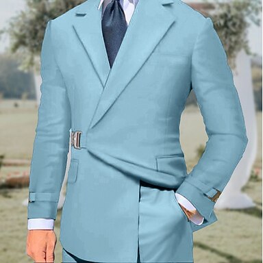 ملك الرجال توكسيدو بدلات الكتان زفاف الشاطئ زفاف شامبانيا أزرق سماوي الصيف بدلة V رقبة لون سادة قالب مثالي 2 قطعة مجموعة