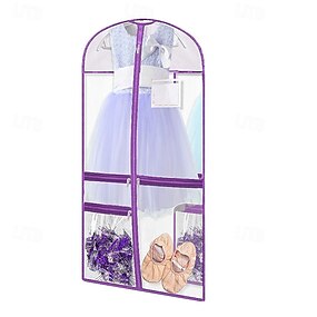 Garment Bag for Kids Dance Costumes, Clear PVC Thick Waterproof Hanging Clothes Cover with Accessory Pockets, Dustproof Storage Bag for Closet or Competitions