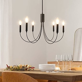 Chandelier 6-Light 26" Modern Metal Farmhouse Chandelier Wrought Iron Classic Candle Ceiling Pendant Light Fixture for Dining Room Living Room Kitchen Island Entry Stairwell, Dia 26" 110-240V