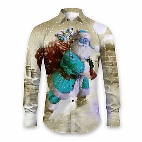Men's Santa Claus Christmas Tree Shirt Long Sleeve Casual Christmas Daily Wear Going out Fall & Winter Turndown Print Button-Down Army Green Red Dark Navy Royal Blue Blue