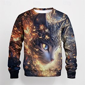 Boys 3D Graphic Cartoon Cat T shirt Tee Long Sleeve Spring Fall Fashion Basic Kids 4-12 Years Crew Neck Outdoor Casual Daily Regular Fit