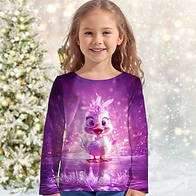 Girls' 3D Graphic Animal Christmas T shirt T shirt Tee Long Sleeve Spring Fall Fashion Basic Kids 4-12 Years Crew Neck Outdoor Casual Daily Regular Fit
