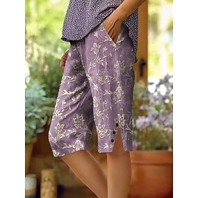 Dámské Bermudské kraťasy Bavlněné plátěné šortky prázdniny Vinobraní ve stylu pobřežní babičky Délka kolen Středně vysoký pas Květinový Grafika Tisk Pohodlné Prodyšné Neelastické Denní Venkovní ulice
