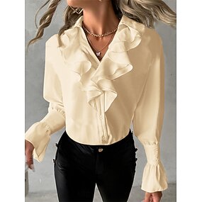 dámská košile halenka denní dopis volánkový potisk dlouhý rukáv běžné topy do výstřihu práce bílá khaki béžová jarní & podzim