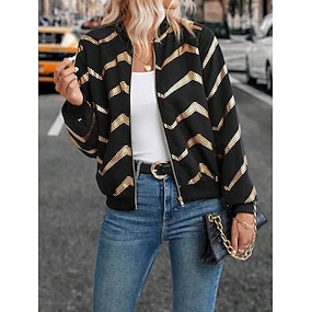 Dámské Letecká bunda Pohodlné Prodyšné Zip Tisk Na běžné nošení Geometrický Dovolená ulice Ležérní Denní nošení Zip Krátké Stojáček Běžný Dlouhý rukáv Svrchní oděvy Černá Léto Jaro