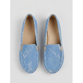Dámské denimo modré slip-on penny loafery – lehké pohodlné ploché boty na každodenní nošení cestování chůzi a casual výlety