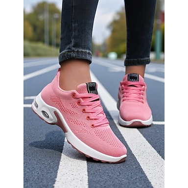 Dámské růžové flyknit tenisky pro volný čas - prodyšné a měkké polstrované pohodlné tenisky pro každodenní nošení, cestování, práci, nakupování, fitness a outdoorové aktivity