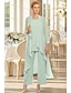 Kalhoty 3 kusový oblek Kalhotový oblek Po kotníky Šaty pro matku nevěsty Poloviční rukáv Úzký výstřih Elegantní Vinobraní Jednoduchý Formální Svatební host Stretch šifon s Krajka Flitry Výšivka