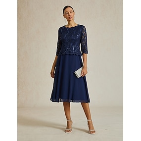 Dámské Midi šaty Šifonové šaty Elegantní Večírek Narozeniny Běžný Pevná barva 3/4 délka rukávu Tričkový Námořnická modř