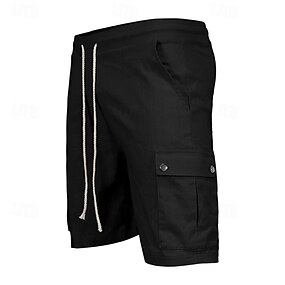 Pánské Šortky s kapsami Lněné šortky Letní šortky Plážové šortky Šňůrky Elastický pas Multi kapsa Bez vzoru Pohodlné Prodyšné Délka kolen Venkovní Práce Denní Klasický styl Na běžné nošení Černá Bílá