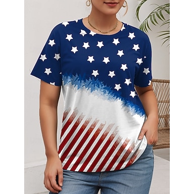Dámské tílka k americkému Dni nezávislosti, plus size, tričko s potiskem vlajky, krátký rukáv, kulatý výstřih, ležérní, denní, polyester, léto, červená, modrá