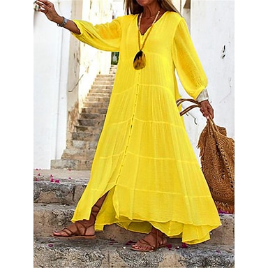Dámské Bílá Žlutá Vodní modrá Léto Jaro Maxi dlouhé šaty Maxi šaty Bílé šaty Košilové šaty Bavlněné plátěné šaty prázdniny Základní Moderní Denní Víkend Volný Bez vzoru Do V