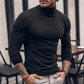 Pánské Tričko Roláková košile Tričko Top Tričko s dlouhým rukávem Dlouhý rukáv Rolák Jaro & podzim Bez vzoru Módní Designové Základní Měkké Dovolená ulice Jdeme ven Černá Bílá Bordó Top tričko pro