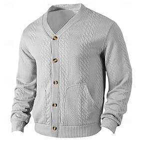 Pánské Svetr Cardigan Kardigan Rýhovaný Plést Běžné topy Tlačítko nahoru Tlačítko dolů Pevná barva Do V Úplet Módní Práce Ležérní Oblečení Jaro & podzim Námořnická modř Béžová S M L