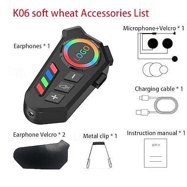 Bluetooth sluchátka do helmy K06 s ambientním osvětlením – vodotěsný bezdrátový interkom pro motocykly s redukcí hluku CVC, čipem 5,4, dlouhou výdrží baterie, hlasovým asistentem pro celou i poloviční helmu