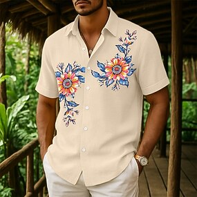 Pánské Košile Lněná košile Letní košile Oblečení na pláž Košile na knoflíky Květiny Dovolená Curise Žlutá Světlá růžová Námořnická modř Trávová zelená Krátký rukáv Límeček Léto Jaro léto Oblečení