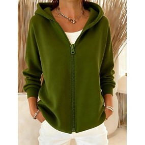 Dámské Mikiny na zip Grafika Aktivní Vinobraní Módní Dlouhý rukáv Kapuce Běžné topy Domů ulice Na den Zip Vodní modrá Rubínově červená Hnědá Trávová zelená Jaro Podzim Zima
