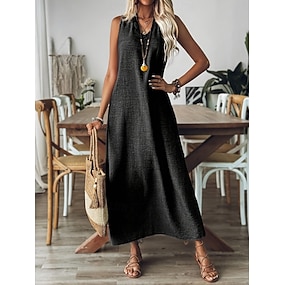 Dámské Maxi šaty Áčkové šaty Letní šaty Na běžné nošení Denní Volný Bez vzoru Bez rukávů Do V Černá Rubínově červená Vodní modrá Meruňková Léto