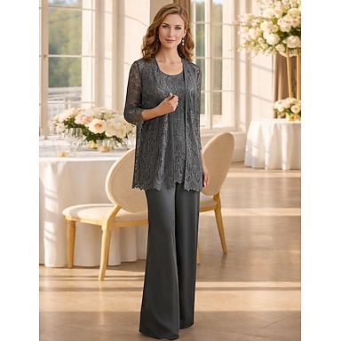 Kalhoty 3 kusový oblek Na zem Šaty pro matku nevěsty Bez rukávů Klenot Elegantní Větší velikosti Bolerko je v ceně Formální Svatební host Svatebnívečírek Šifón Krajka s Jednobarevné