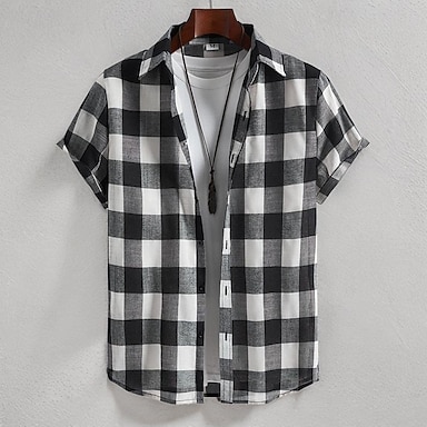 Pánské Košile Letní košile Košile pro volný čas Plážová košile Košile na knoflíky Kostkované košile Černá Krátký rukáv Pléd Přehnutý Dovolená Havajské Oblečení Polyester Módní Na běžné nošení Pohodlné