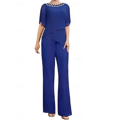 Kalhotový kostým v délce podlahy šaty pro matku nevěsty krátký rukáv čtvercový výstřih elegantní jednoduché svatební hosty s jednobarevným provedením